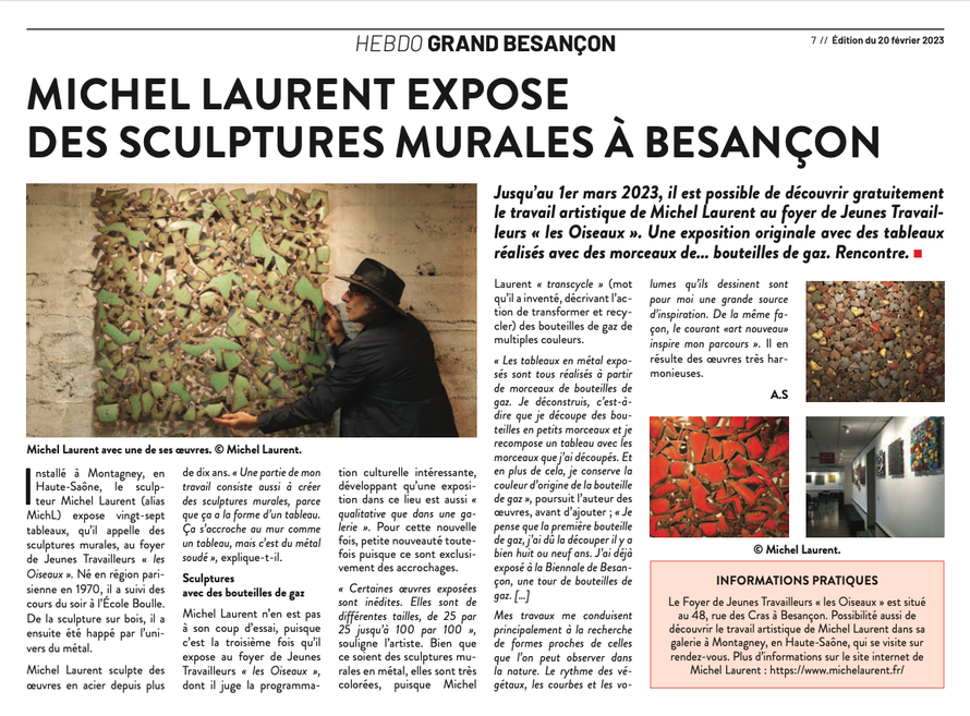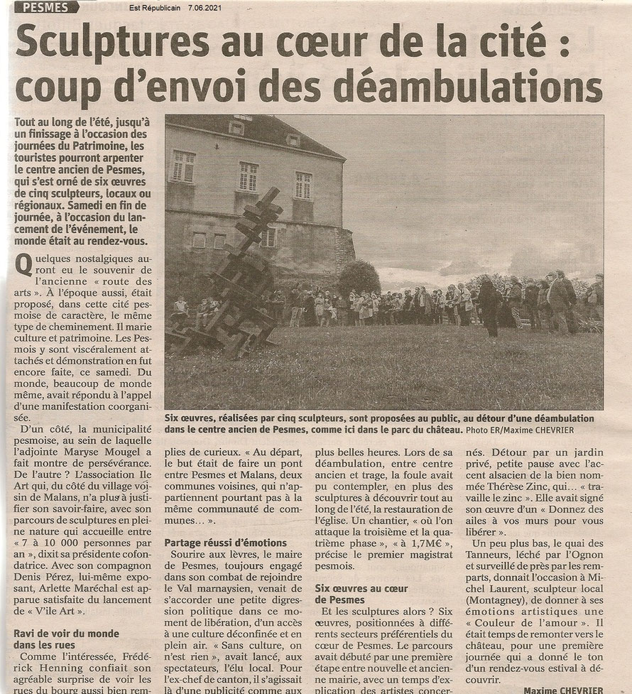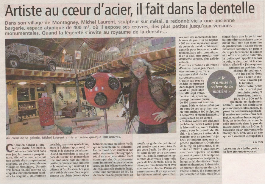 Article paru dans Le Progrès du 13 juin à propos du symposium de sculpture métal de Fraisans dont je participe à l'organisation.