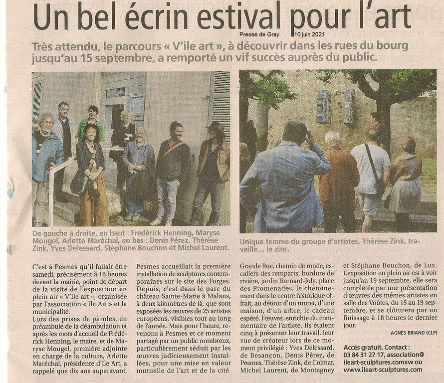 Article paru dans Le Progrès du 15 juin à propos du symposium de sculpture métal de Fraisans dont je participe à l'organisation.